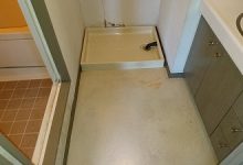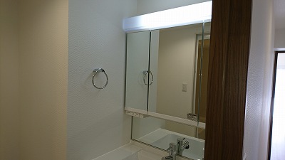 白を基調とした壁紙や床にすることで清潔感溢れる空間となりました。広々とした化粧台は使い勝手が良さそうです。